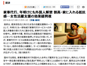 『家事代行、年明けにも外国人解禁(sankei.biz)』